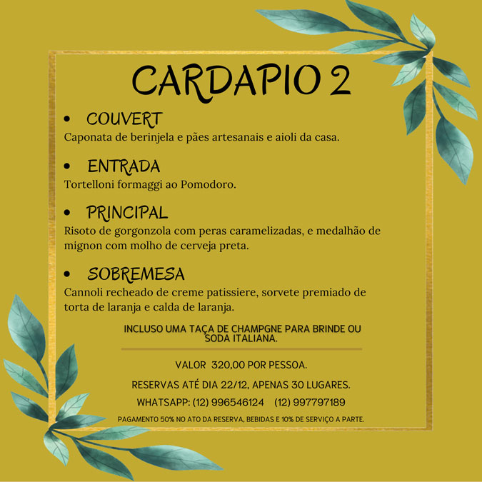 Um sonho a partir de duas pessoas que se amam e amam a gastronomia, temos como conceito levar à sua mesa e sua família uma refeição de qualidade e excelência, com produtos selecionados, de pequenos produtores da região da Mantiqueira, em sua maioria orgânicos e artesanais, nossas massas são feitas com farinha italiana e com ovos de galinhas felizes e de bom trato (caipira). Tudo feito artesanalmente e com muito carinho e afeto.