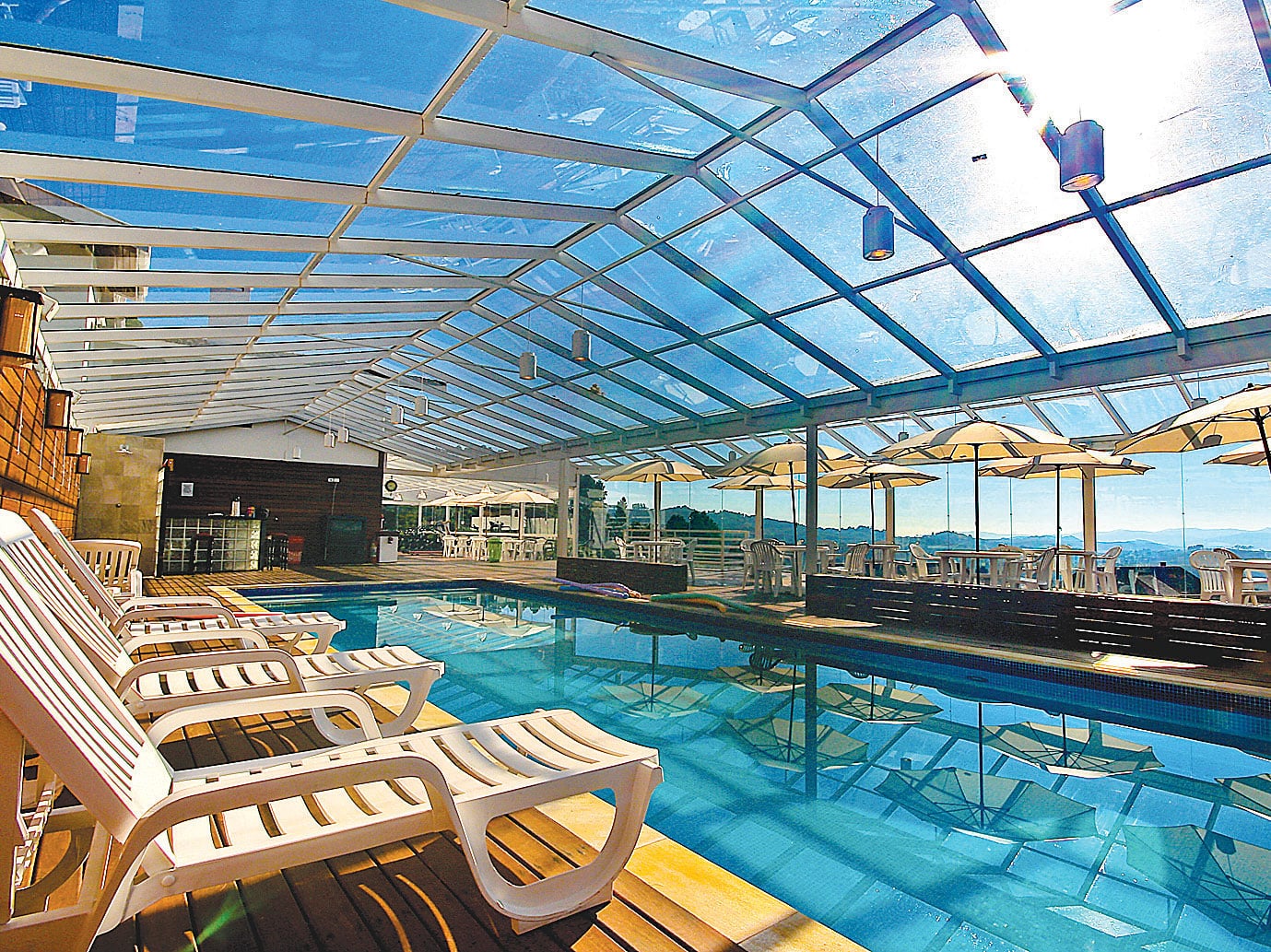 Uma rua tranquila já quase no topo do Morro do Elefante, é a via que conecta ao Chris Park ao Centrinho. Atravessando a cancela, surge uma vista magistral da cidade, que é compartilhada com a maioria dos apartamentos e áreas de lazer, como a academia e a piscina. É isso mesmo: de dentro d’água dá para ver o cenário que abrange o Capivari, pois a piscina é inteiramente envidraçada. Em outra ala ficam as suítes supermodernas, que têm como um dos diferenciais banheiras com vista panorâmica. Com 80 m², a suíte presidencial possui janelas que mostram a cidade em 180º. O visual espetacular também é um dos atrativos do restaurante e pizzaria Bella Vista, inaugurado em 2017. Telefone: 3663-1151 / HORÁRIOS: Café da Manhã: 8:00 - 11:00h