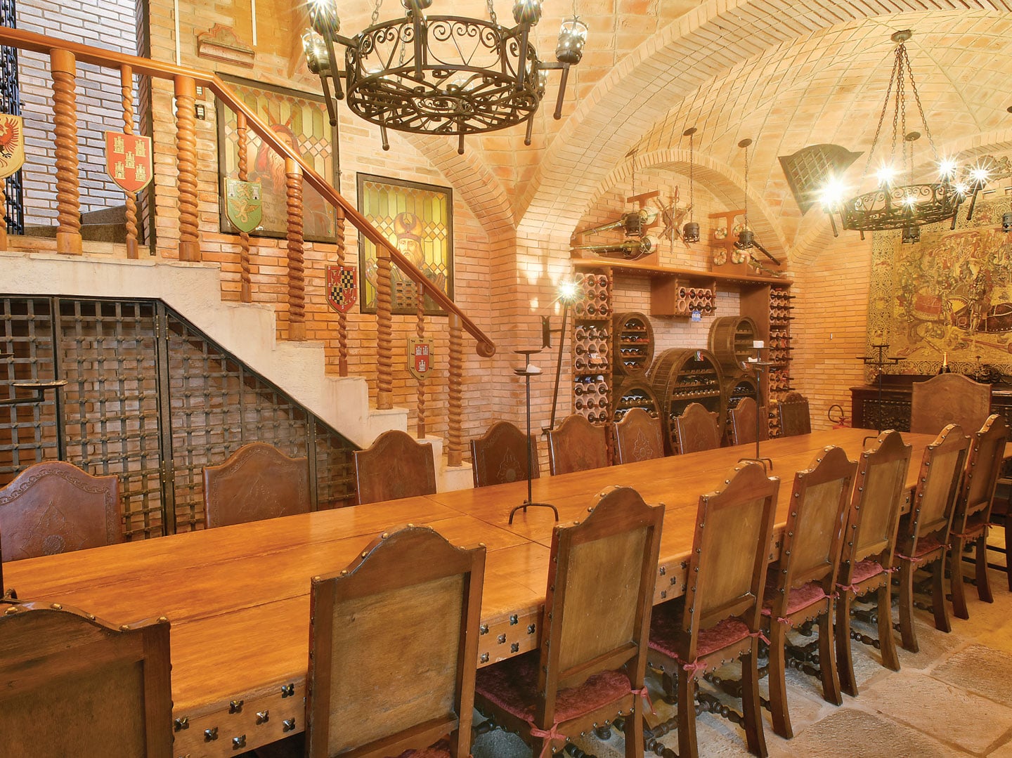 A poucos quarteirões do Palácio Boa Vista, um exuberante castelo exibe obras de arte, armaduras, elmos, espadas, brasões e vitrais bem trabalhados. É o Castelo Nacional Inn, que oferece hospedagem ambientada nos antigos palácios, com as facilidades de um hotel moderno. Metade dos apartamentos tem a face voltada para a Pedra do Baú. Entre as atrações destaca-se a adega no subsolo. Para alcança-la é preciso cruzar um corredor repleto de animais empalhados. No estilo medieval, a cave abriga uma mesa para 35 pessoas. É nesse local que garçons completam as taças de vinho. Já o salão do café tem vista para o jardim e é decorado com inúmeros quadros. Telefone: 3662-5950 / HORÁRIOS: Café da Manhã: 8:00 - 11:00