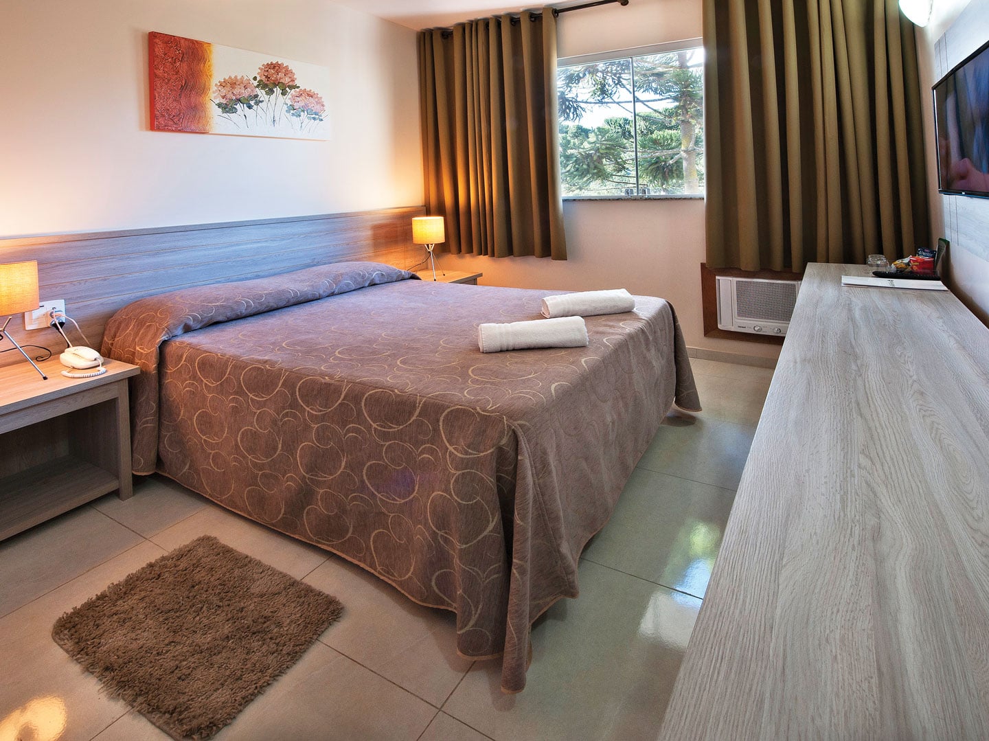 Tendo em seu entorno um bosque do qual se abrem trilhas para caminhadas, o Golden Park está a 200 metros do portal da cidade. O cenário bucólico engloba um lago com pedalinhos, quiosque com churrasqueira, playground e área gramada com equipamentos de ginástica. Para o lazer há também uma quadra poliesportiva, sauna úmida, ofurôs, salão de jogos e uma área com espreguiçadeiras junto à qual fica uma TV de 50”. As acomodações dividem em duas categorias: chalés inseridos no meio do bosque e os apartamentos do prédio central. Telefone: 012 3662-4088 / HORÁRIOS: Café da Manhã: 8:00 - 11:00